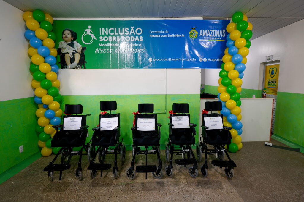 Em Japurá (a 744 quilômetros de Manaus), foram entregues seis cadeiras de rodas postural infantil, além de uma Carteira de Identificação da Pessoa com Deficiência (CIPcD).